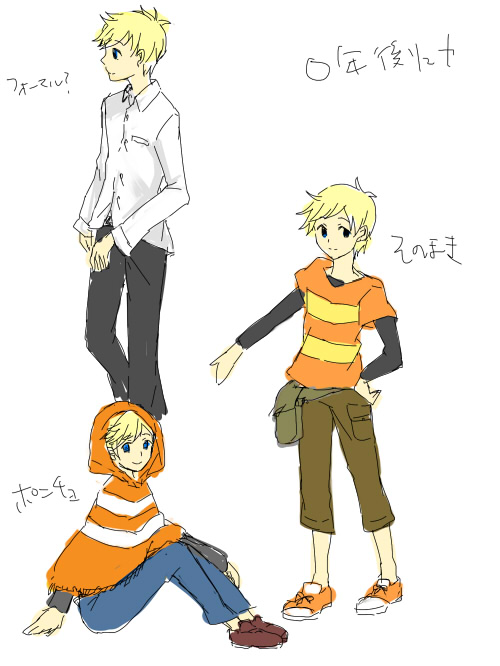 次描きたい絵が未来のリュカの絵なので、どういう格好が似合うかなーと思っていろいろ描いてみました。