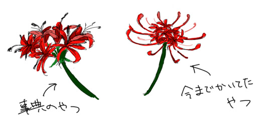 学校の勉強のために植物の用語辞典なるものを購入してぺらぺらめくってたんですが、そのなかに彼岸花の写真と解説があって見てたら